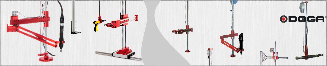 Linearne i przegubowe ramiona reakcyjne zamocowane są najczęściej do stołów montażowych i zapewniają absorpcje momentu reakcyjnego wywołanego przez pracę narzędzia montażowego. Ramiona linearne DOGA BA pozwalają na zachowanie prostopadłości narzędzia względem stanowiska montażowego lub stałą orientacje względem montowanego detalu. Narzędzie zamocowane w uchwycie może poruszać się w płaszczyźnie pionowej i poziomej. Ramiona przegubowe DOGA BA...R oraz ramiona ślizgowe DOGA BA...C charakteryzują się wysoką elastycznością pracy, a ruch zbliżony do ruchu ludzkiego ramienia pozwala na pracę w miejscach o ograniczonej przestrzeni. Zastosowanie przegubu wpływa na wyższy komfort pracy operatora przy zachowaniu bezpieczeństwa na stanowisku montażowym. Szeroki wybór akcesoriów takich jak uchwyty, zaciski, prowadnice przedłużające pozwoli na odpowiednie dostosowanie ramienia do stanowiska pracy. Dodatkowo dostępne są systemy wspomagające pracę operatora - system easy push i baper.