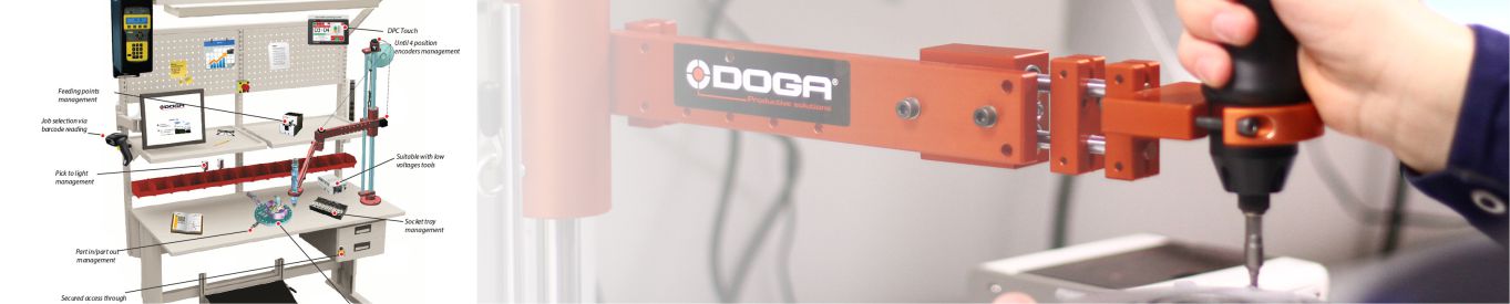 Ramiona reakcyjne DOGA wszystkich wyżej wspomnianych serii mogą zostać wyposażone w nowoczesny system pozycjonowania DOGA Posi-Control - enkodery oraz opcjonalnie sterownik DPC Touch. Dzięki temu operator jest instruowany odnośnie kolejnych wykonywanych operacji, a narzędzie uruchamiane jest wyłącznie gdy zachowana jest ustalona kolejność dokręcania oraz położenie narzędzia. System poprawia jakość produkcji dzięki eliminacji błędów, zapewniając dokładne sekwencjonowanie i pozycjonowanie oraz jest kompatybilny z narzędziami pneumatycznymi, elektrycznymi i EC - zarówno tymi oferowanymi przez nas, jak i pozostałymi dostępnymi na rynku.