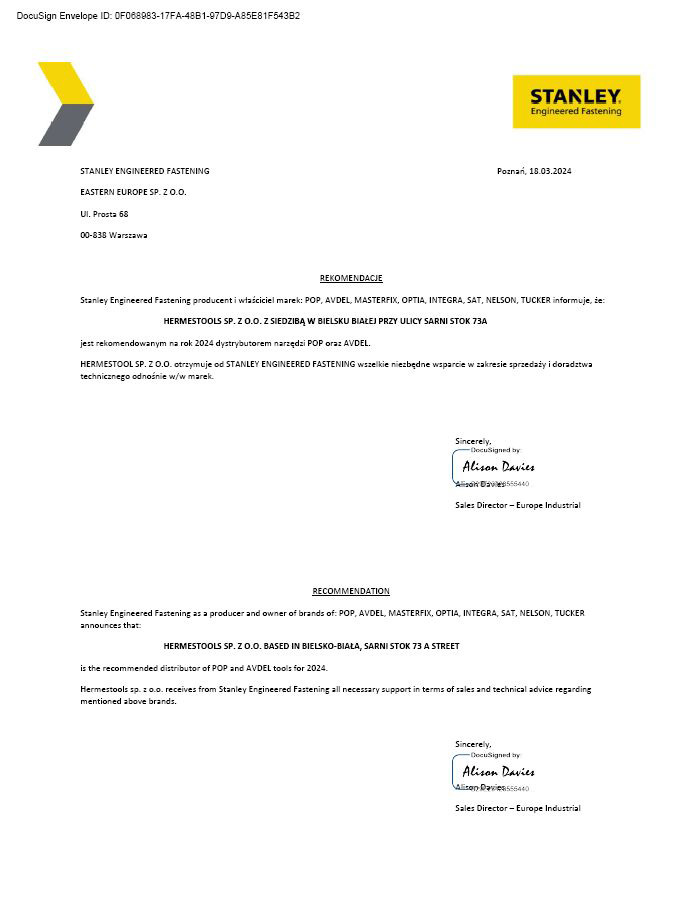 Więcej informacji w załączonych materiałach oraz na stronie producenta >> STANLEY ENGINEERED FASTENING. Firma HERMES jest oficjalnym dystrybutorem produktów N-GINERIC w Polsce >> autoryzacja.