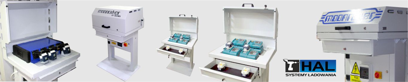 Założona przez nas w 1996 roku marka HAL swoim zakresem obejmuje urządzenia do ładowania oraz testowania akumulatorów do przemysłowych wkrętarek bezprzewodowych różnych marek (Makita, Bosch, Fein, Atlas Copco, Gesipa, Panasonic itd.). Stacje, które oferujemy, pozwalają na jednoczesne ładowanie i testowanie od jednego do kilkunastu akumulatorów różnych producentów, co pozwala na lepszą organizację miejsca pracy. Dodatkowo dzięki mikroprocesorowemu sterowaniu akumulatory są w razie konieczności całkowicie rozładowywane i ładowane do pełna, co powoduje wydłużenie żywotności akumulatora. Urządzenie za pomocą diod LED sygnalizuje ładowanie akumulatora, jego uszkodzenie oraz wadę elektroniki.