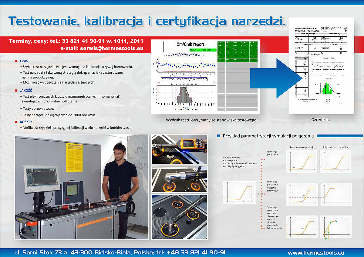 Oferujemy okresowe przeglądy narzędzi montażowych (w szczególności wkrętarek przetwornikowych EC i wkrętarek sprzęgłowych) oraz pomiarowych, mające na celu dokładne sprawdzenie stanu technicznego, wymianę zużytych części oraz wykonanie czyszczenia oraz konserwacji. W ramach usługi możliwe jest również wykonanie kalibracji narzędzia oraz jego sprawdzenie na mobilnym stanowisku testowym SCS FTY (więcej na ten temat w dziale Kalibracja narzędzi montażowych i kontrolnych). Dzięki temu klient ma pewność, że używane w procesie produkcyjnym narzędzia pracują poprawnie. Każdy przegląd finalizowany jest stworzeniem raportu dla klienta, w którym poza potwierdzeniem optymalnego stanu narzędzia, umieszczane są sugestie dotyczące jego dalszej eksploatacji oraz wymiany elementów narażonych na szybkie zużycie.