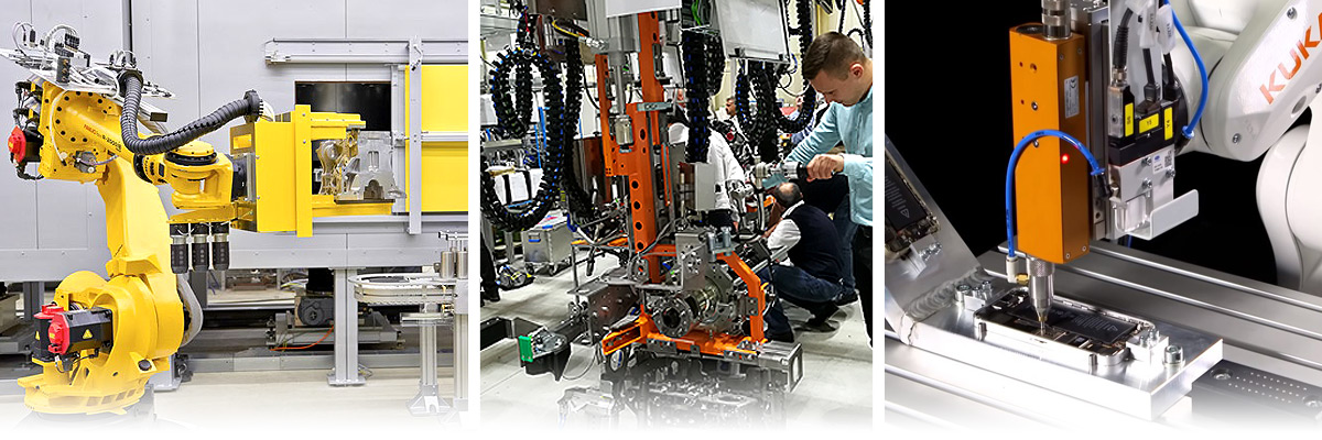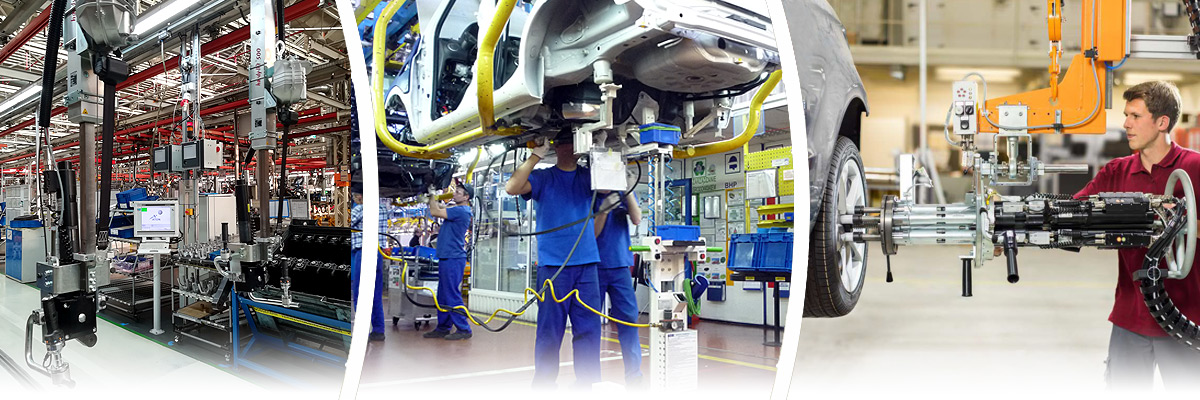 Projektujemy, konstruujemy oraz modernizujemy stanowiska montażowe, sterujące oraz kontrolne. Nasza specjalizacja to kompletne stacje dokręcające, również zautomatyzowane i zrobotyzowane, wyposażone w inteligentne wrzeciona dokręcające. Do budowy stanowisk wykorzystujemy podzespoły wyłącznie sprawdzonych dostawców: m.in. AMT (wkrętarki i wrzeciona), SCS (urządzenia do pomiaru momentu i kąta), ITEM, BOSCH REXROTH, TRILOGIQ (konstrukcja), FESTO, METAL WORK (pneumatyka), SIEMENS (sterowanie), RITTAL (elektryka). Stanowiska mogą zostać wyposażone w dodatkowy osprzęt np. pola odkładcze oraz balansery i pantografy do narzędzi, panele operatorskie, przyłącza elektryczne i powietrzne, systemy kontrolne czy urządzenia odsysające. Oferujemy również szeroki zakres systemów manipulacyjnych i reakcyjnych, mających na celu zwiększenie ergonomii pracy operatora oraz zapewniających powtarzalność procesu. Projektujemy i konstruujemy również stanowiska i urządzenia mobilne (tzw. partnery), wykorzystywane na liniach produkcyjnych do montażu końcowego takich elementów jak zbiorniki paliwa, butle gazowe, układy wydechowe i inne.