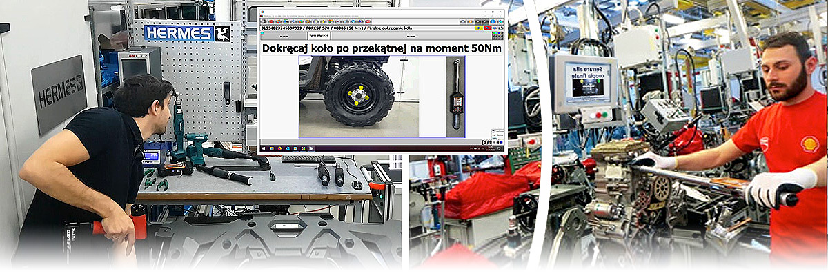 Proces montażu może być wizualizowany, nadzorowany i kontrolowany poprzez dostarczone przez nas oprogramowanie SCS VPG+, przeznaczone do prowadzenia operatorów w celu wykonania operacji dokręcania i innych powiązanych z procesem montażu za pomocą komunikatów, w tym graficznych, wyświetlanych na panelach operatorskich. Dzięki komunikacji poprzez protokół otwarty, program SCS VPG+ jest w stanie zarządzać wieloma dostępnymi na rynku przemysłowymi narzędziami dokręcającymi (m.in. AMT, CLECO, ATLAS COPCO, STANLEY). Dodatkowo każdy proces może odbywać się z kontrolą pozycji narzędzia, co w połączeniu z oprogramowaniem SCS VPG+, tworzy niezawodny proces montażu w myśl metody Poka-Yoke. Posiadamy również inne, dedykowane dla konkretnych narzędzi i systemów oprogramowania do wizualizacji i kontroli poprawności wykonywanych operacji.